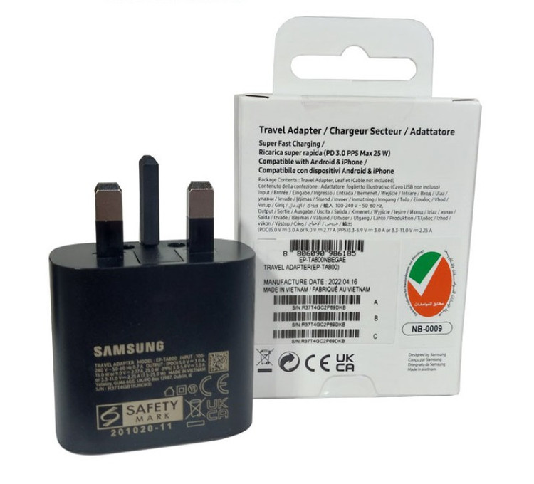 - مثلاً در شارژر ۲۵ وات سامسونگ مدل EP-TA800: